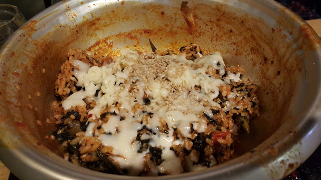 닭볶음탕 남은거에 밥을 비벼 달라고 했는데 아마 원래는 주먹밥을 주문해서 먹다 남으면 이런식으로 만들어주는 듯하다.