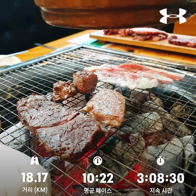 산을 내려오자마자 고깃집의 유혹. 배는 안고프지만 식탐은 어디 안간다.