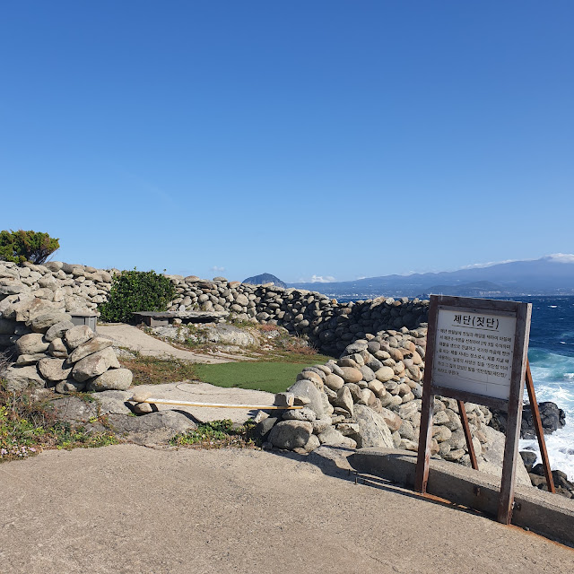 2.5m 단을 쌓았을 뿐인데 사방이 한 눈에 보여 전망이 상당히 좋다. 남쪽 마라도 방향.