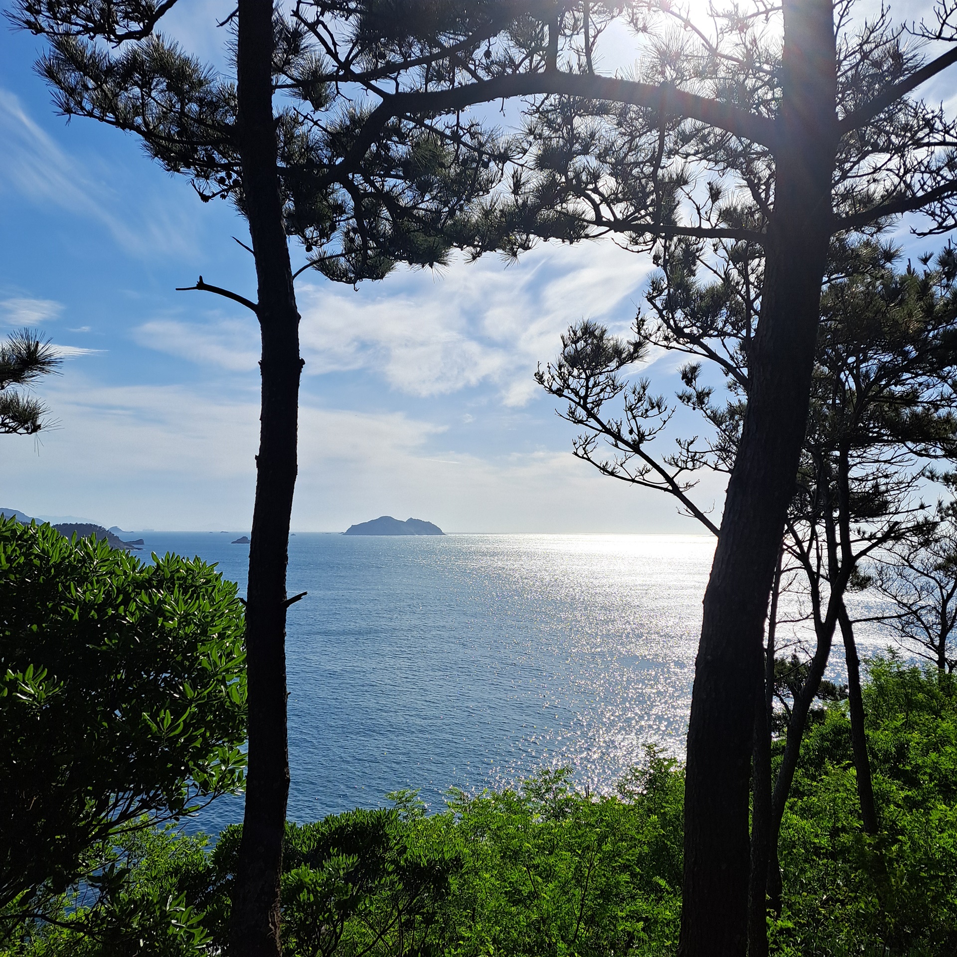 돈대산 오르는 길에 뒤돌아 본 상추자도.