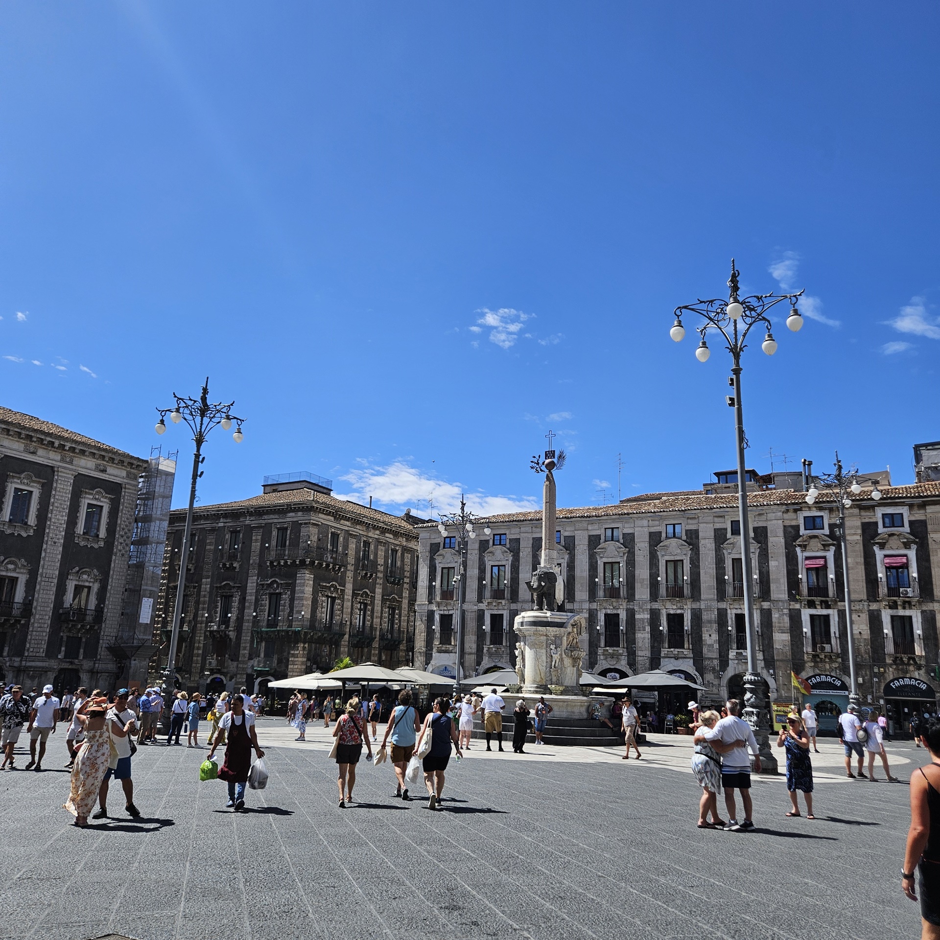 - The central plaza of Catania. It is always full of vigorous atmosphere, and of course tourists. Artists busking at nights. Good to take a break while walking around but restaurants are not recommended. You can find good small cafes in the corner instead.